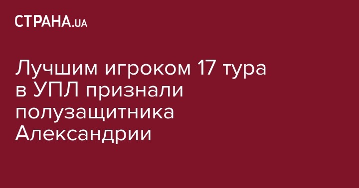 Лучшим игроком 17 тура в УПЛ признали полузащитника Александрии