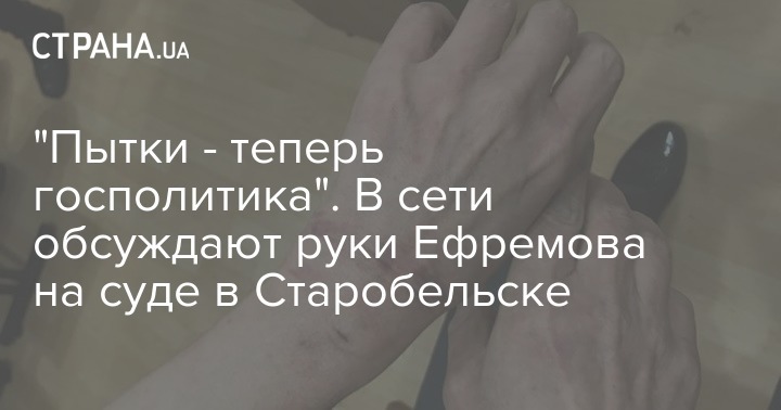 Пользователи соцсетей обсуждают фотографию рук экс-регионала Александра Ефремова со следами от наручников. 3 декабря на заседании Старобельского суда Луганской области ему стало плохо, но судья запретил госпитализировать подсудимого, несмотря на рекомендации врачей, а конвой вытащил его из машины скорой помощи.