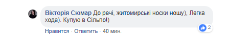 Также она добавила, что такая брошь с доставкой стоит около тысячи долларов. Сама Виктория Сюмар отметилась в комментариях к этому посту, заявив, что брошь поддельная, ее стоимость в одном из ТЦ - 190 гривен, также она предложила журналистке вместе сходить в торговый центр, так как еще одна такая брошь там еще осталась. Чуть ниже в комментариях к публикации глава Комитета по вопросам свободы слова добавила, что носки она носит житомирские и покупает их в обычном супермаркете.