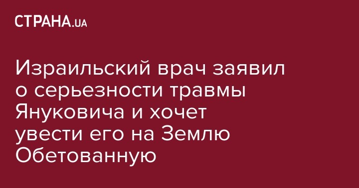 Израильский врач заявил о серьезности травмы Януковича и хочет увести его на Землю Обетованную