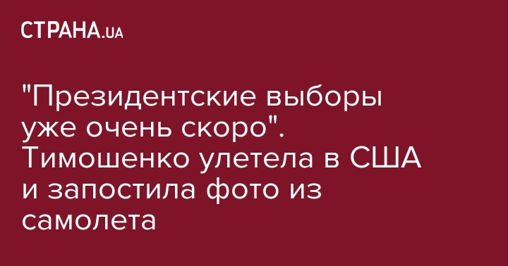 "Президентские выборы уже очень скоро". Тимошенко улетела в США и запостила фото из самолета