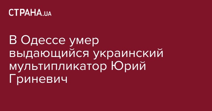 4 декабря умер украинский мультипликатор и режиссер, директор Одесской студии мультипликации, член правления Одесского отделения Национального союза кинематографистов Украины Юрий Гриневич. Об этом пишет "Думская"