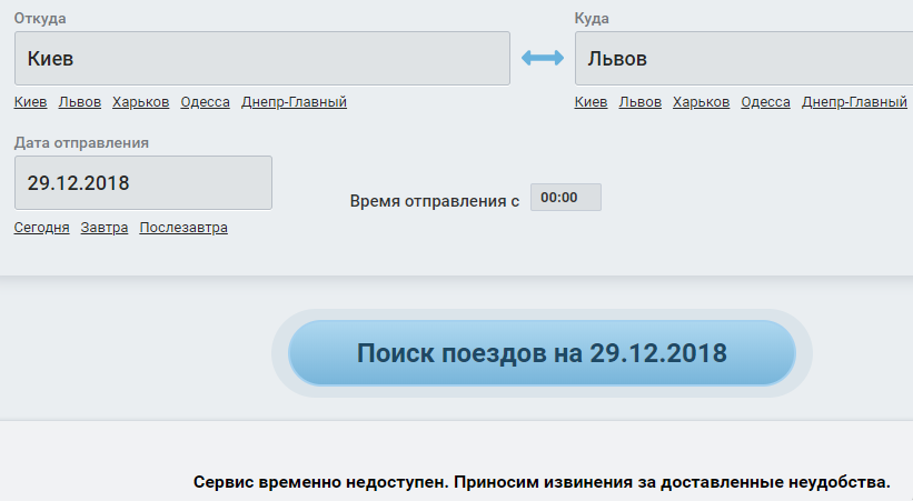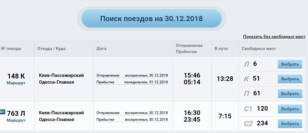 Но удалось выяснить, что, например, на 30 декабря билеты на направление Киев - Одесса есть.