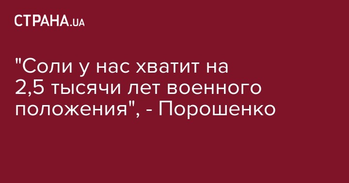 "И даже призыв немедленно покупать соль и спички, - мы продемонстрировали с предприятием в Бахмуте огромную гору соли и заверили наших северных соседей "за поребриком", что соли у нас хватит на 2,5 тысячи лет военного положения. Пускай не переживают. Нет комендантского часа, как некоторые предрекали. Нет прекращения деятельности СМИ", - сказал Порошенко.