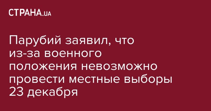Спикер Верховной Рады Андрей Парубий заявляет, что провести местные выборы, запланированные на 23 декабря, сейчас невозможно из-за введения военного положения. Об этом он сообщил на III Форуме местного самоуправления 5 декабря, передает "Украинская правда".