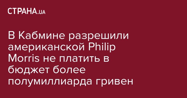 Правительство Украины подписало мировое соглашение с американским табачным гигантом Philip Morris, сняв с компании обязательство дополнительно внести в бюджет страны 635 млн грн.