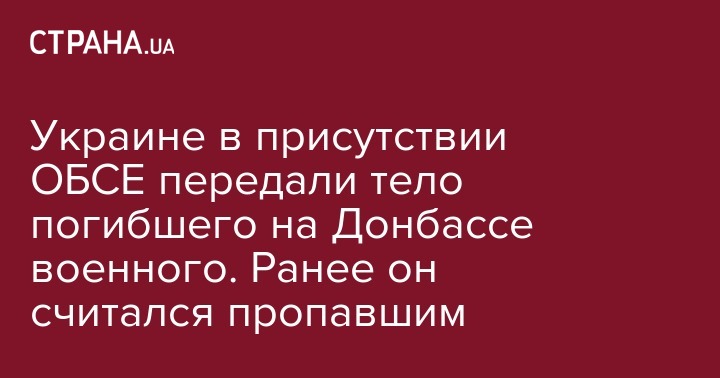 Украине в присутствии ОБСЕ передали тело погибшего на Донбассе военного. Ранее он считался пропавшим