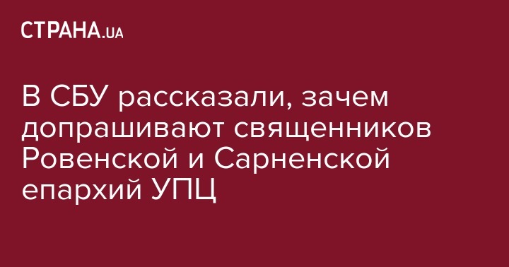 В СБУ рассказали, зачем допрашивают священников Ровенской и Сарненской епархий УПЦ