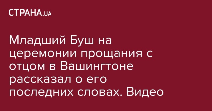 Джордж Буш-младший во время церемонии прощания с отцом в Вашингтонском кафедральном соборе сказал, что перед смертью он сказал ему, что любит его и что он был "замечательным отцом". Последними словами Джорджа Буша-старшего были "Я тоже тебя люблю", сообщил бывший президент США. "Когда книги по истории будут написаны, в них будет указано, что Джордж Герберт Уокер Буш был выдающимся президентом Соединительных Штатов", - сказал Джордж Буш-младший.