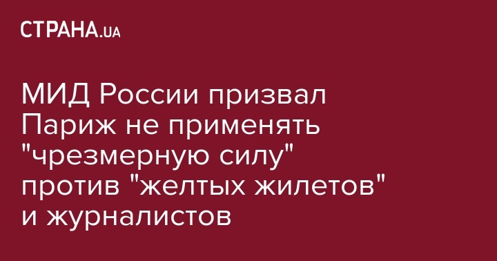 В МИД России призвали официальный Париж воздержаться от чрезмерного применения силы на протестных акциях "желтых жилетов", а также обеспечить журналистам безопасные условия освещения мероприятий.