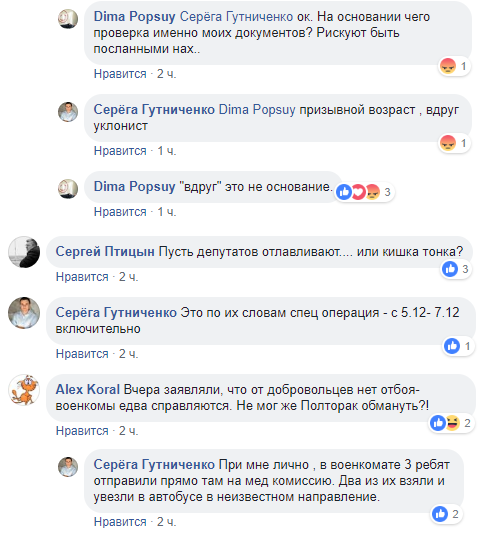 "При мне лично , в военкомате 3 ребят отправили прямо там на мед комиссию. Двух из них взяли и увезли в автобусе в неизвестном направлении", - пишет пользователь.