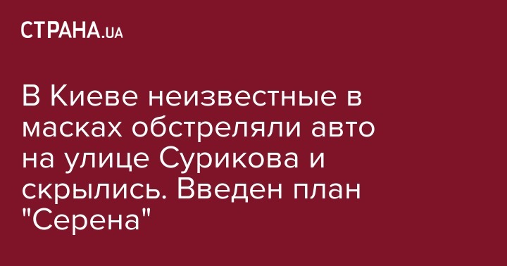 В Киеве неизвестные в масках обстреляли авто на улице Сурикова и скрылись. Введен план "Серена"