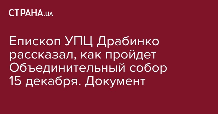 Епископ УПЦ Драбинко рассказал, как пройдет Объединительный собор 15 декабря. Документ