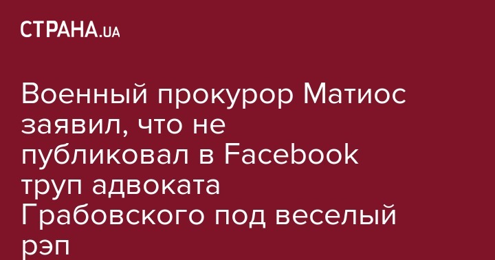 Военный прокурор Матиос заявил, что не публиковал в Facebook труп адвоката Грабовского под веселый рэп