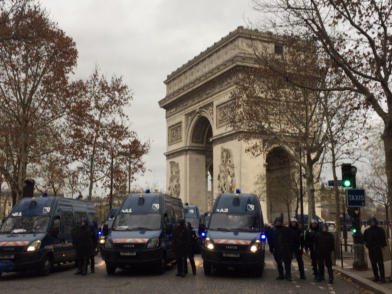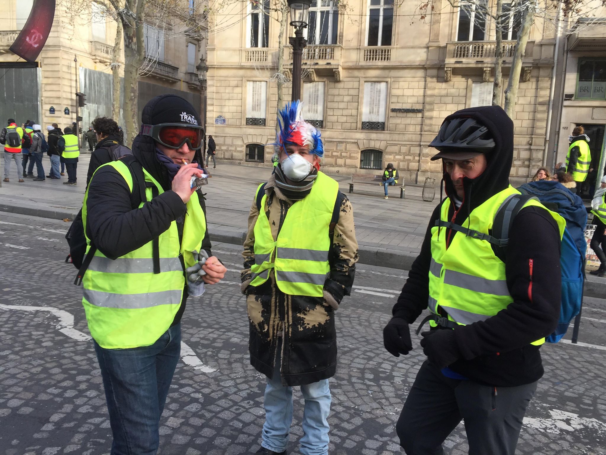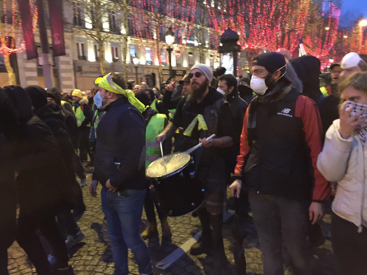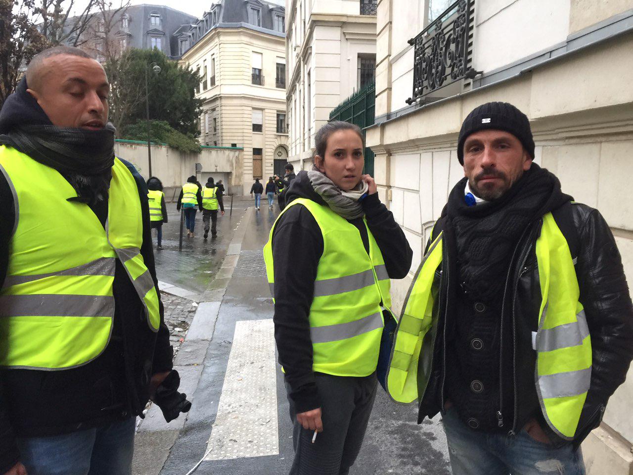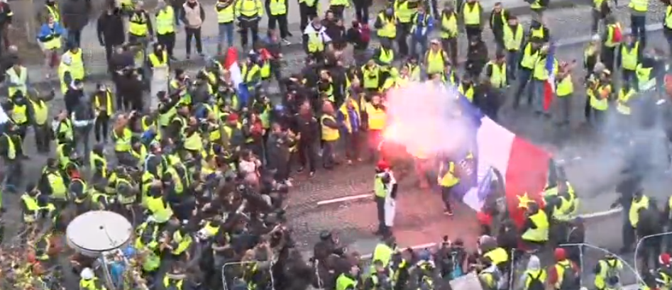 Пик протестов пришелся на 1 декабря. Общее число протестующих по всей стране оценивалось полицией в 136 тысяч человек. Также не обошлось без погромов, поджогов машин, разрушений магазинов и банков. Была повалена ограда сада Тюильри, разграблены магазины в центре города, а символ Парижа Триумфальная арка разрисована граффити.