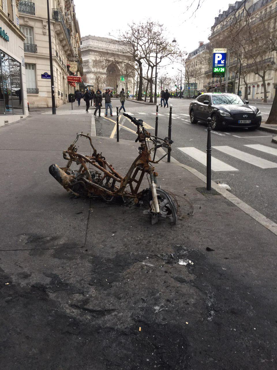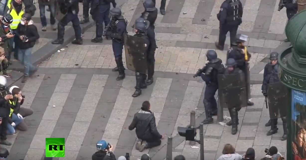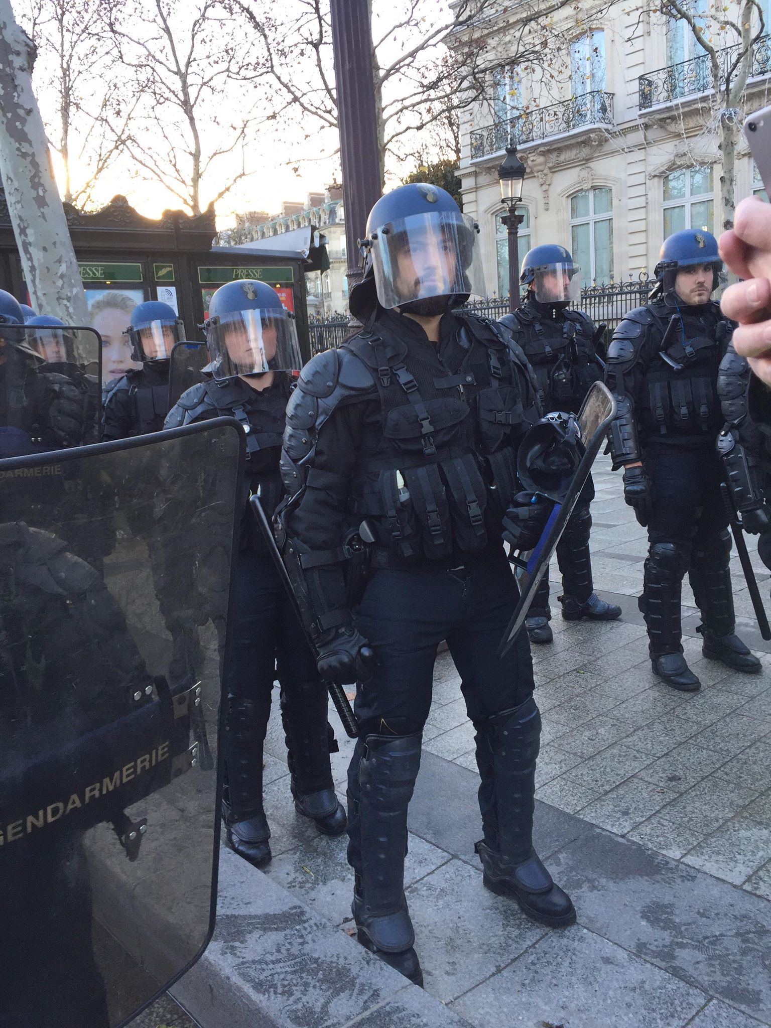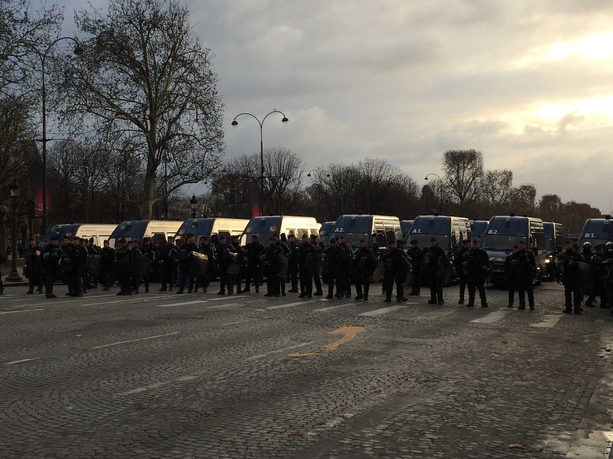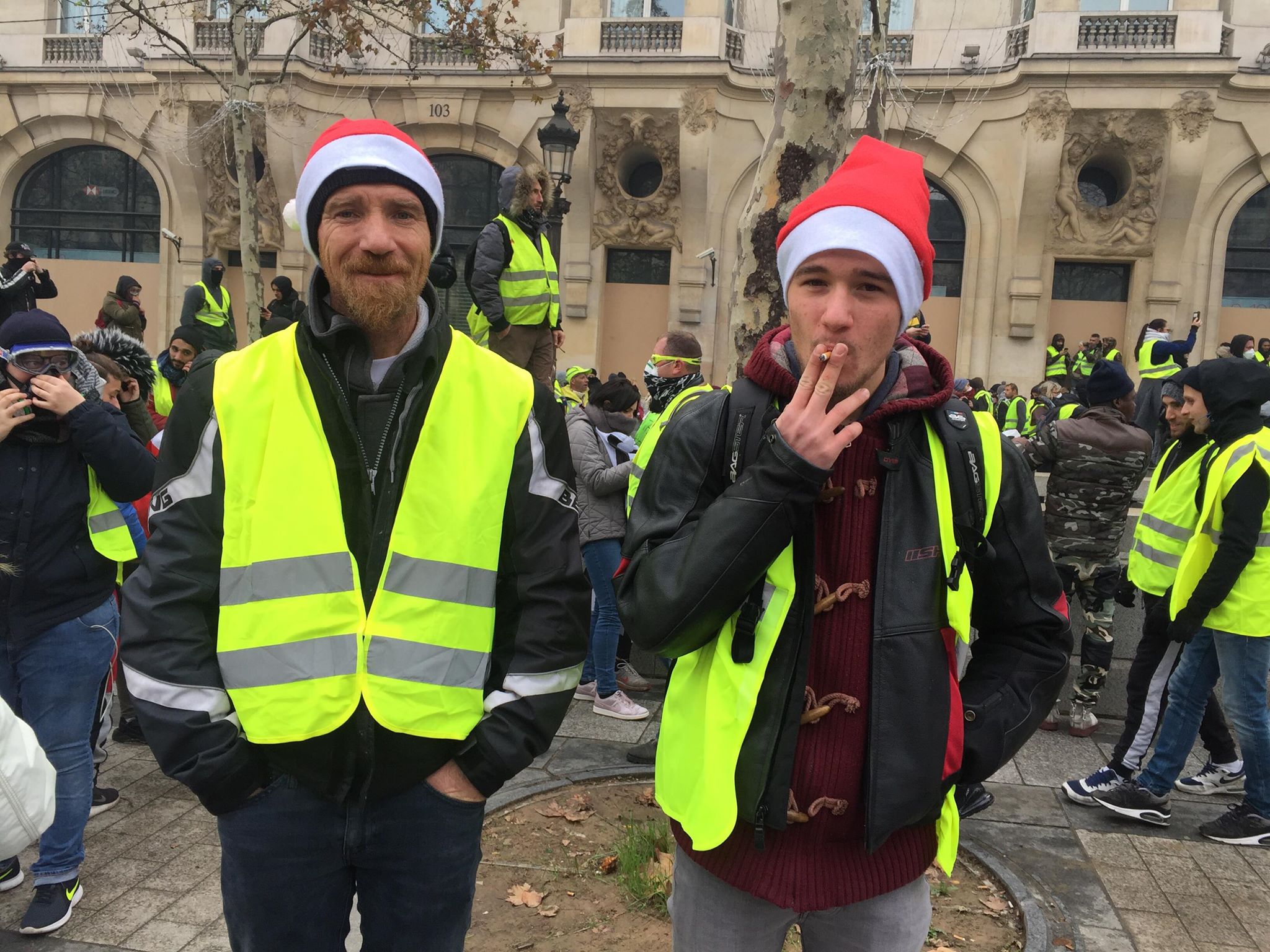 Пик протестов пришелся на 1 декабря. Общее число протестующих по всей стране оценивалось полицией в 136 тысяч человек. Также не обошлось без погромов, поджогов машин, разрушений магазинов и банков. Была повалена ограда сада Тюильри, разграблены магазины в центре города, а символ Парижа Триумфальная арка разрисована граффити.