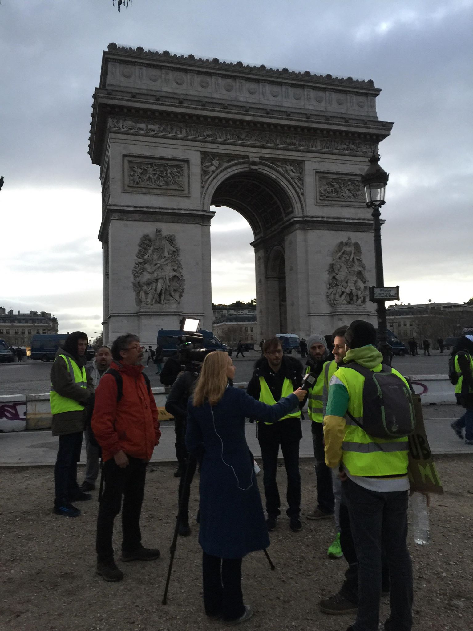 9:54  Желтые жилеты уже возле Триумфальной арки. Раздают интервью.