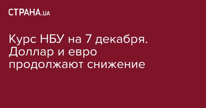 Курс НБУ на 7 декабря. Доллар и евро продолжают снижение