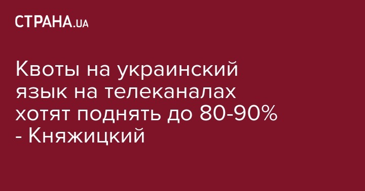 Председатель комитета Верховной Рады по вопросам культуры и духовности Николай Княжицкий заявил, что необходимо стремиться к 90% вещанию на украинском языке на общенациональных каналах, 10% будут отданы для вещания на языках национальных меньшинств. Об этом он заявил во время проведения круглого стола "Языковые квоты на телевидении" в Киеве в пятницу, передает "Интерфакс-Украина".