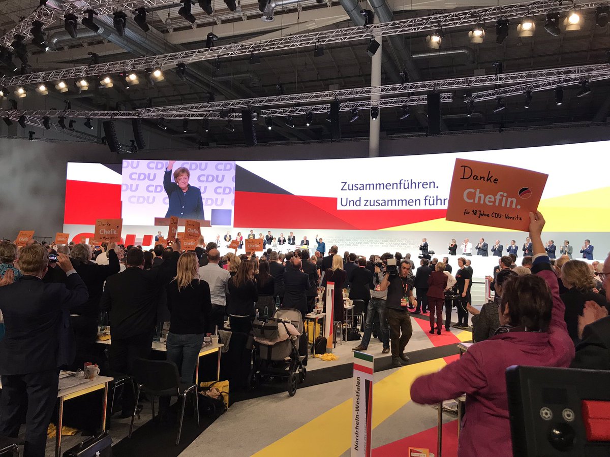 Как сообщала "Страна", Ангела Меркель в своей последней речи на посту председателя ХДС заявила, что "пришло время открыть новую главу". Она отметила, что строить будущее можно лишь с уверенностью, а не с обидами и раздором, и призвала демократов объединиться. Речь вызвала бурные овации, продлившиеся девять минут, некоторые делегаты провожали Меркель со слезами на глазах.