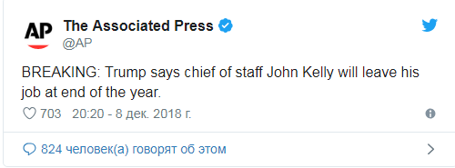 В ноябре сообщалось, что президент США Дональд Трамп рассматривает возможность сменить главу аппарата Белого дома Джона Келли, а также главу аппарата офиса вице-президента Соединённых Штатов.
