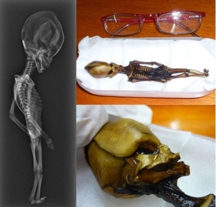 Длина найденного скелета составляла всего около 15 сантиметров, у него было десять пар ребер вместо обычных человеческих 12 пар и сильно деформированный вытянутый череп.