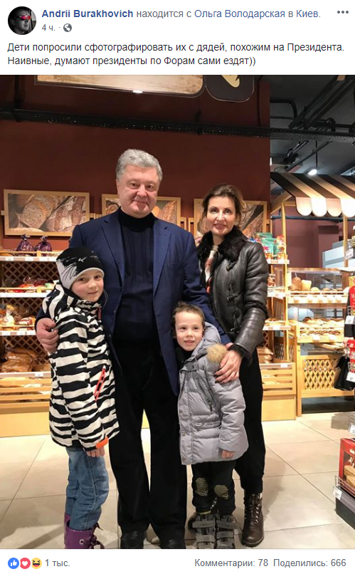 Режиссуру этого фото косвенно подтверждает скорость с какой данный пост зятя нардепа подхватил президентский советник Юрий Бирюков и известный блогер, лояльный к Порошенко - Мирослав Олешко.