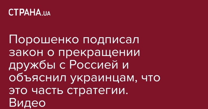 Президент Петр Порошенко подписал закон о прекращении действия договора о дружбе, сотрудничестве и партнерстве между Украиной и Российской Федерацией, сообщает пресс-служба главы государства и публикует обращение президента по поводу подписания этого документа.