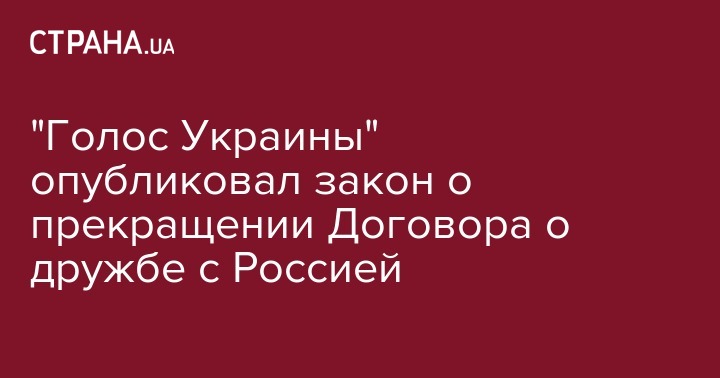 Во вторник, 11 декабря, в газете Верховной Рады "Голос Украины" опубликовали текст закона о прекращении действия Договора о дружбе, сотрудничестве и партнерстве с Россией. Об этом сообщает DW.
