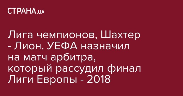 Лига чемпионов, Шахтер - Лион. УЕФА назначил на матч арбитра, который рассудил финал Лиги Европы - 2018