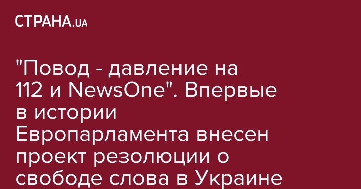 "Повод - давление на 112 и NewsOne". Впервые в истории Европарламента внесен проект резолюции о свободе слова в Украине