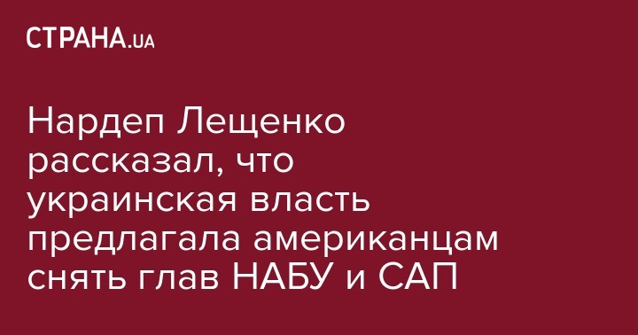 Нардеп Лещенко рассказал, что украинская власть предлагала американцам снять глав НАБУ и САП