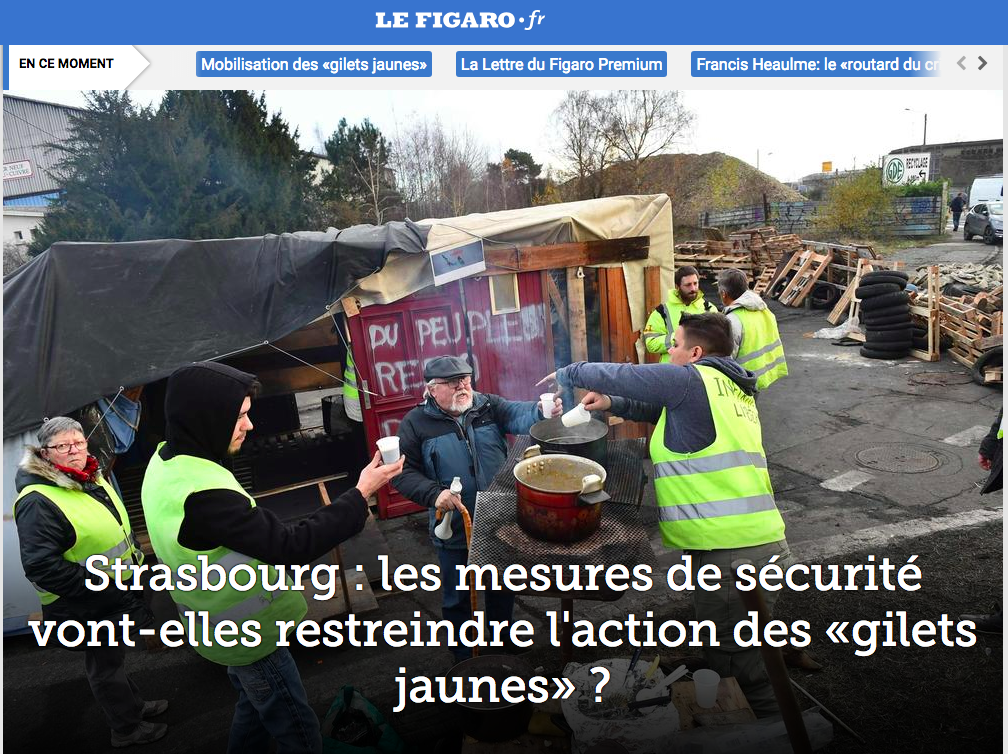 Теракт вытеснил из французских СМИ тему "желтых жилетов" и дискуссии вокруг обещания президента Эммануэля Макрона добавить к минимальной зарплате 100 евро в ответ на массовые волнения.