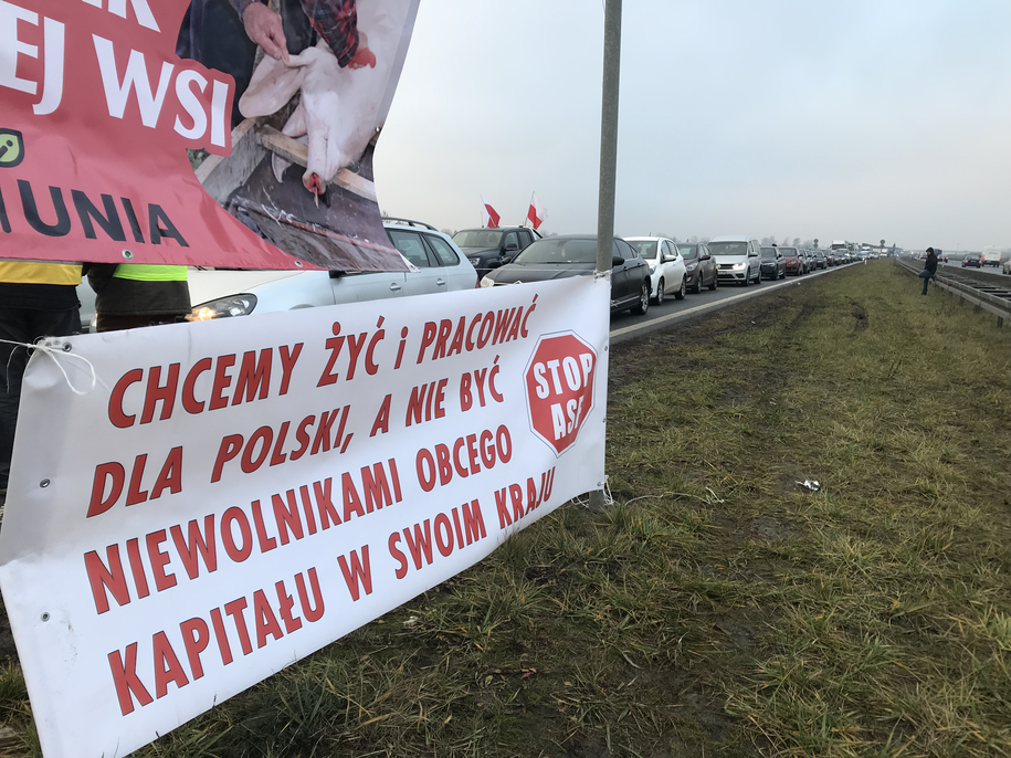 Аграрии требуют решения своих проблем, связанных с угрозой африканской чумы свиней, а также других вопросов. Автостраду заблокировали несколько автомобилей, установленных поперек трассы. Среди них стоят протестующие. "Мы требуем, чтобы к нам приехал премьер Моравецкий. Мы передадим ему наши требования и ожидаем их выполнения", - сообщил один из участников протеста.