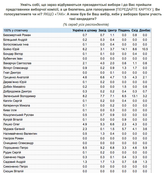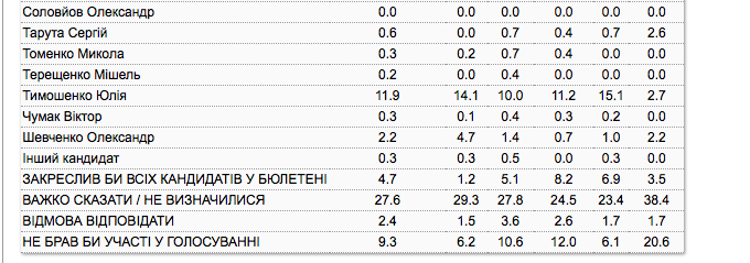 В таблице №1 - предпочтения всех респондентов. В таблице №2 - тех украинцев, которые собираются голосовать и уже определились с выбором.