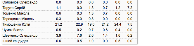 Президентский рейтинг украинских политиков. Полный список