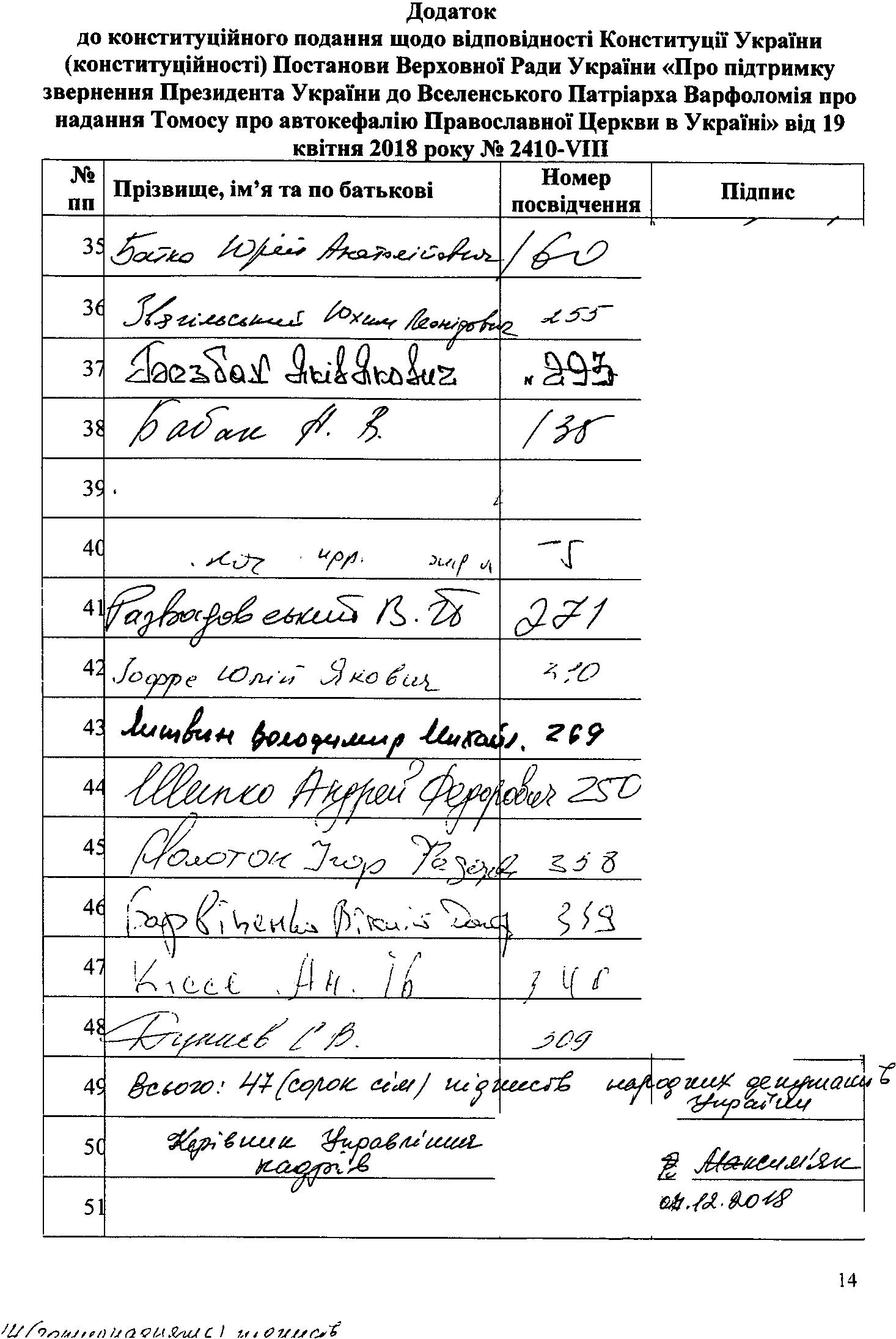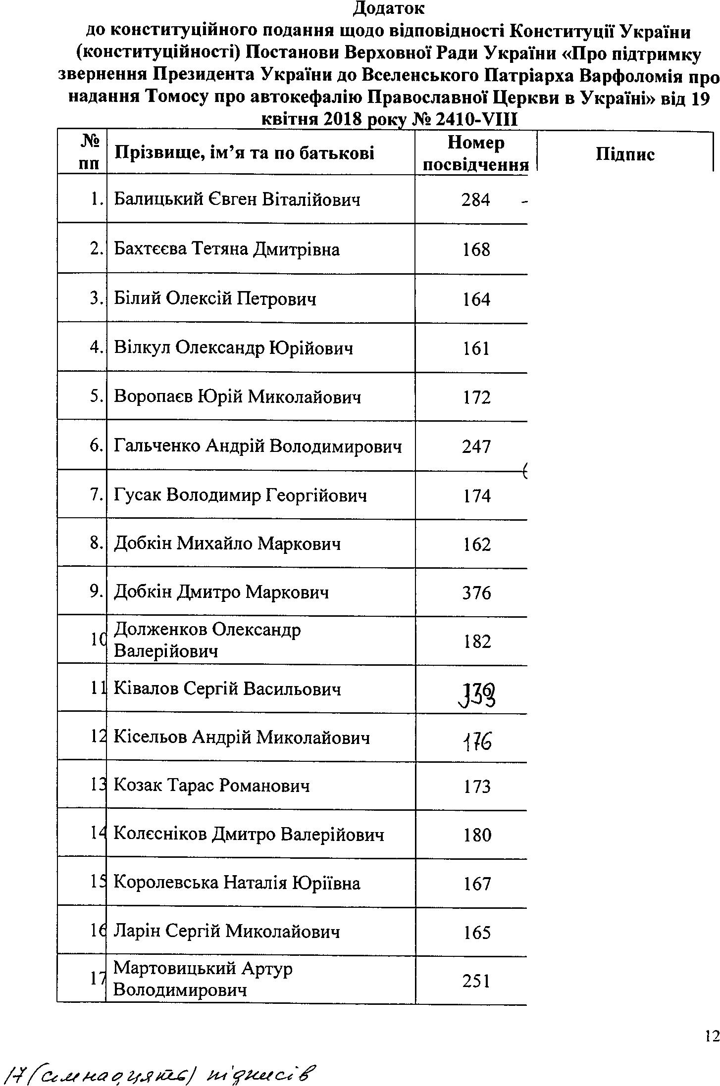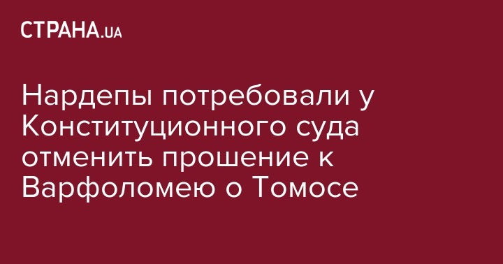 Группа депутатов обратилась в Конституционный суд с требованием о признании противоправным и отмене постановления Верховной Рады о поддержке обращения к патриарху Варфоломею о предоставлении Украине Томоса об автокефалии. Соответствующее представление опубликовано на сайте суда.