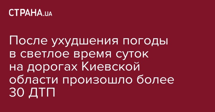 После ухудшения погодных условий на дорогах Киевской области произошло более 30 ДТП. В результате один человек погиб, еще один травмирован.