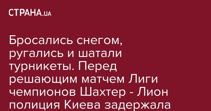 Бросались снегом, ругались и шатали турникеты. Перед решающим матчем Лиги чемпионов Шахтер - Лион полиция Киева задержала 27 человек