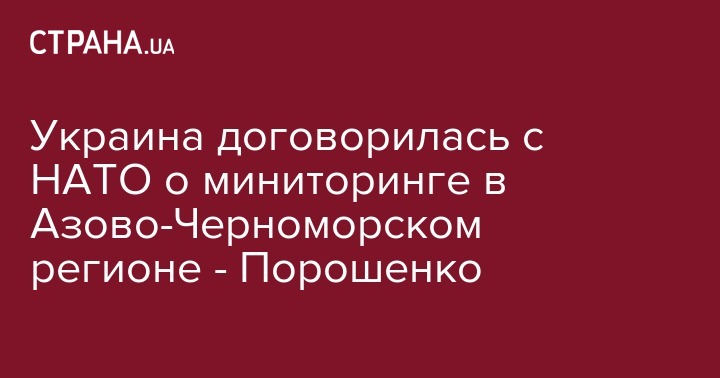 Президент Украины Петр Порошенко заявляет о достижении договоренности с НАТО об организации Североатлантическим альянсом воздушного и морского мониторинга ситуации в Азово-Черноморском регионе. Об этом Порошенко скащал на совместной с генеральным секретарем НАТО Йенсом Столтенбергом пресс-конференции в четверг в Брюсселе, пишет Интерфакс-Украина.