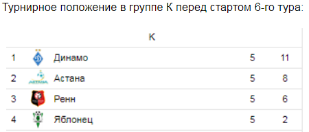 19:02 Киевляне проведут последний матч в этом году. В параллельной игре "Ренн" сразится с "Астаной" в матче за выход в следующий раунд Лиги Европы. Французам нужна только победа.