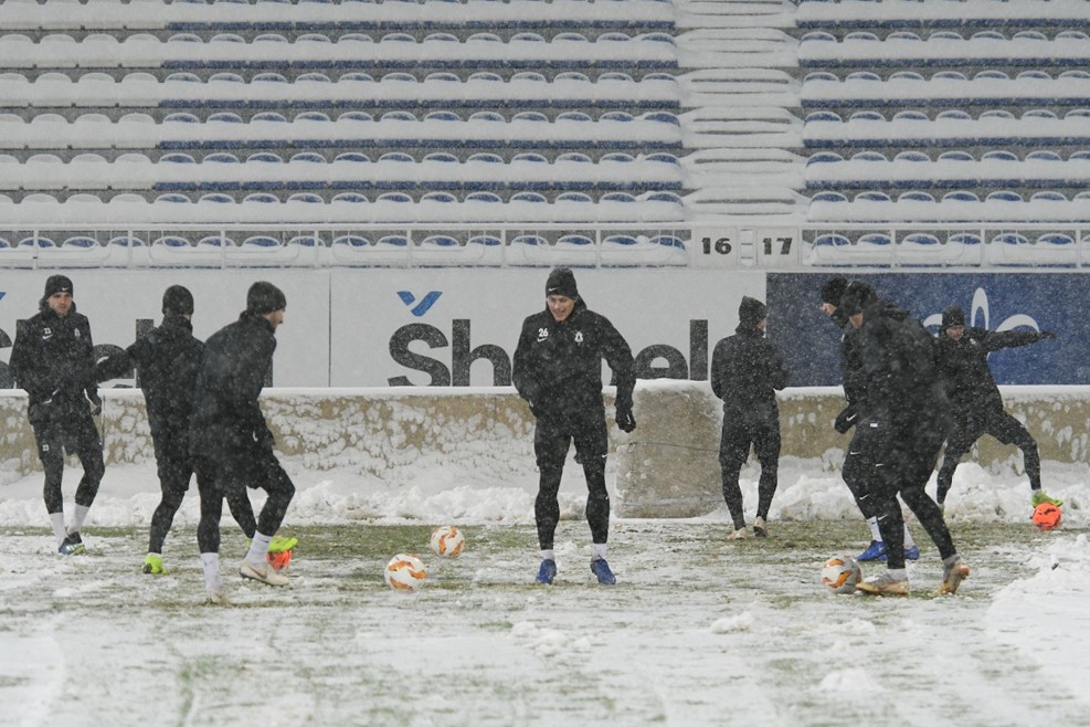 Погода не благоприятствует матчу. Поле стадиона существенно размокло после вчерашней игры "Шахтера" и "Лиона", и синоптики говорят, что к вечеру погода не улучшится. Ранее допускалось, что матч может быть перенесен на стадион "Динамо" имени Лобановского, но в итоге его решили оставить на "Олимпийском". Отметим, что из-за метели, начавшейся накануне матча, киевским футболистам пришлось тренироваться на своей базе с оранжевыми мячами - чтобы их было лучше видно на поле. Чехи, в свою очередь, тренировались на стадионе имени Лобановского. Их тренер лично с лопатой в руках помогал расчищать стадион для своих футболистов.