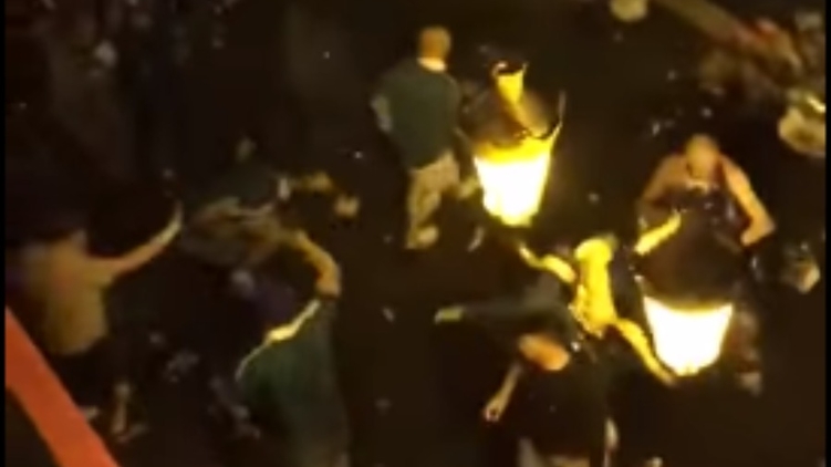 Согласно данными очевидцев, в драке были замешаны несколько сотен участников. Кроме рукопашного боя, болельщики применяли бутылки, столы и стулья, находившиеся на летних террасах.