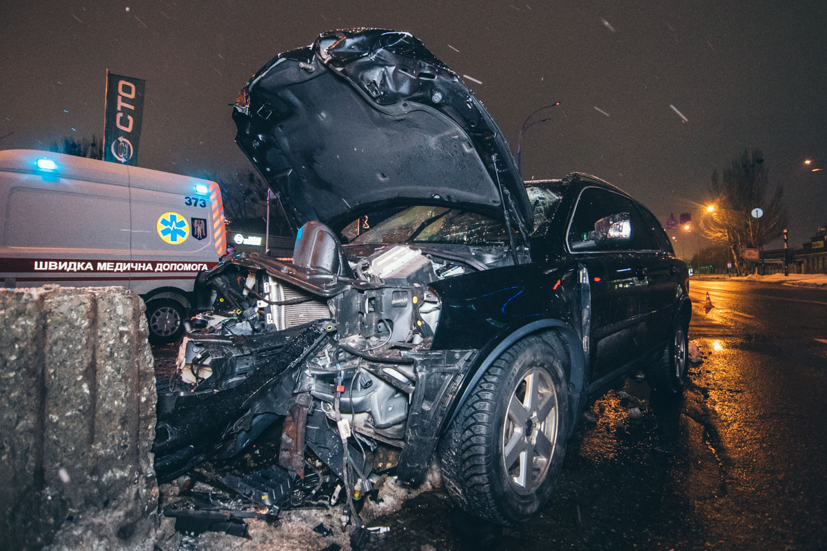 В Киеве внедорожник врезался в отбойник при въезде на мост, водитель погиб на месте