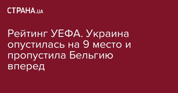 Поражения Динамо и Ворсклы, и самое главное не выход Шахтера в плей-офф Лиги чемпионов (за который УЕФА начисляет дополнительные бонусные баллы - Прим.Ред.) привели к тому, что Украина опустилась на 9 место в рейтинге УЕФА, пропустив на восьмую позицию Бельгию.