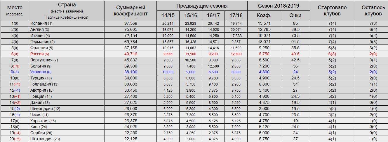 После завершения групповых турниров Лиги чемпионов и Лиги Европы, стало ясно, что Украина не улучшит свои позиции в национальном рейтинге УЕФА.