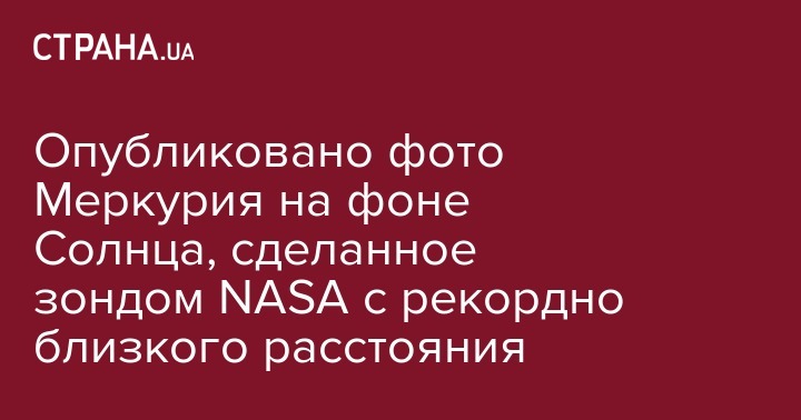 Опубликовано фото Меркурия на фоне Солнца, сделанное зондом NASA с рекордно близкого расстояния
