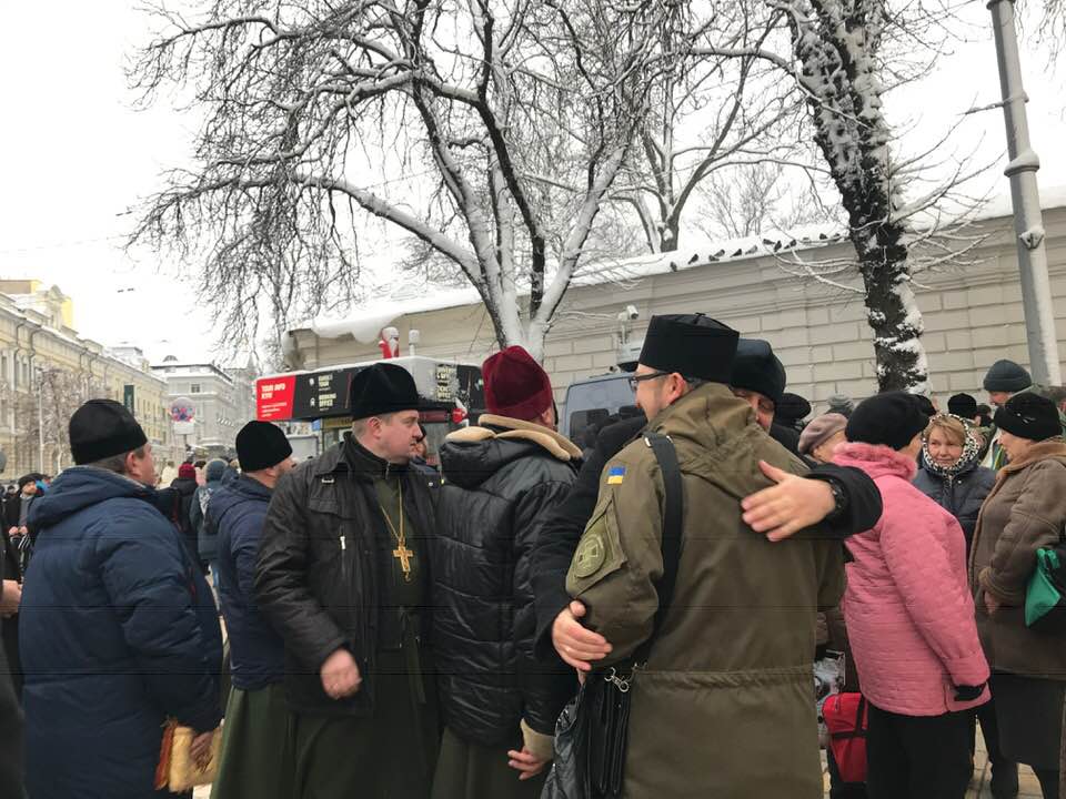 Как сообщала "Страна", сегодня с самого утра к Софийскому собору сходятся тысячи людей. Некоторых людей свозят с регионов. У них в руках украинские государственные флаги. Люди ожидают решения объединительного собора, на котором в храме Святой Софии должны в течение дня избрать предстоятеля будущей Украинской поместной православной церкви и утвердить ее устав.