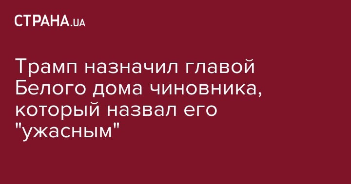 Трамп назначил главой Белого дома чиновника, который назвал его "ужасным"