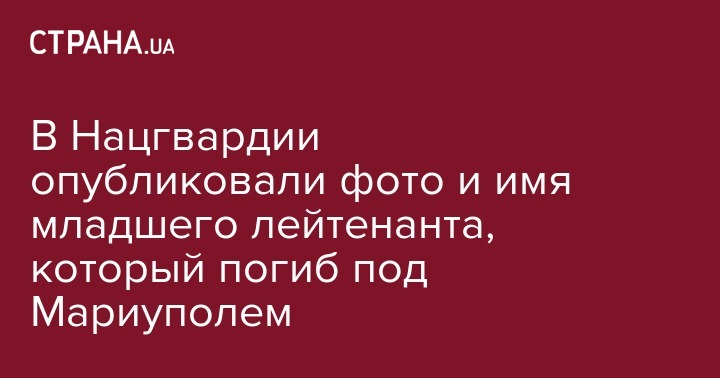 В Нацгвардии опубликовали фото и имя младшего лейтенанта, который погиб под Мариуполем